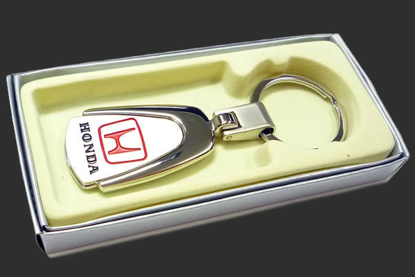 ウオータードロップ(ティアドロップ)型のメタルの輝きとカーメーカーロゴが良くマッチしたとてもお値打ち感のあるキーリングです。カラーは画像を参照ください。